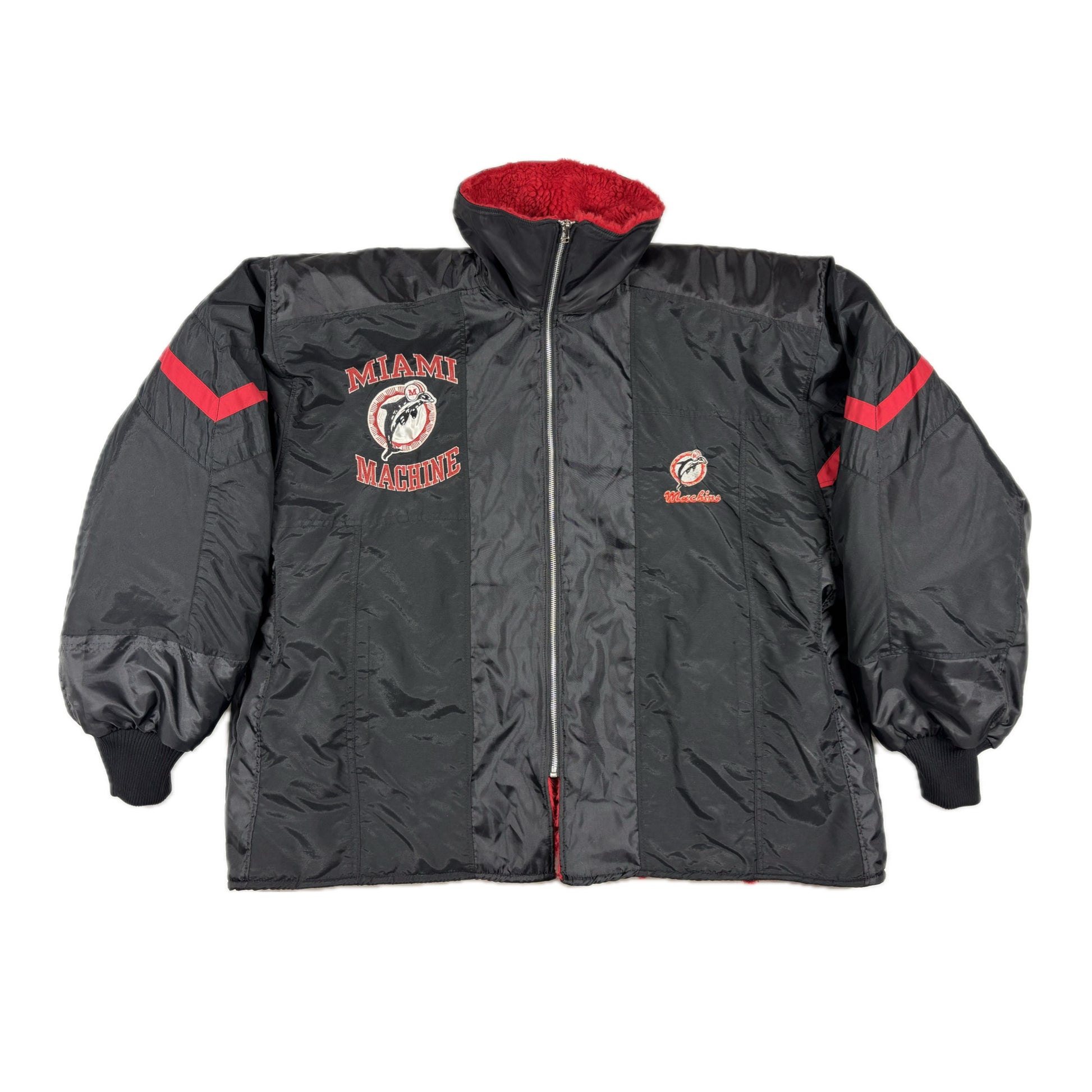 miami machine embroidery on front both sides, miami dolphin logo on back